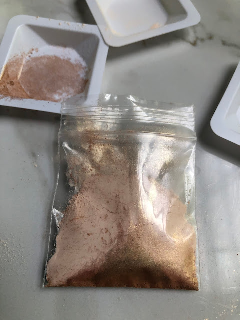 Add the pigments into a small baggie and seal. Gently massage the colors together until well blended.